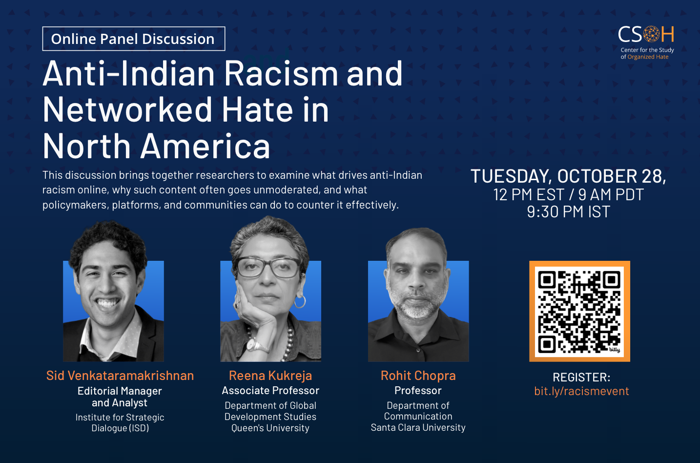 The Center for the Study of Organized Hate (CSOH) is strongly driven by its mission to advance research and inform policies that combat hate, violence, extremism, radicalism and online harms.