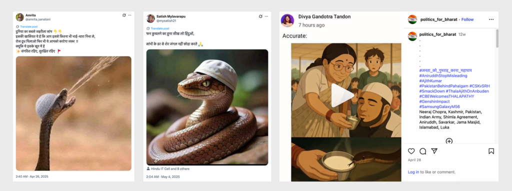 - AI-generated images depicted Muslims as snakes wearing skullcaps, a dehumanizing metaphor that framed them as deceptive, dangerous, and deserving of elimination.