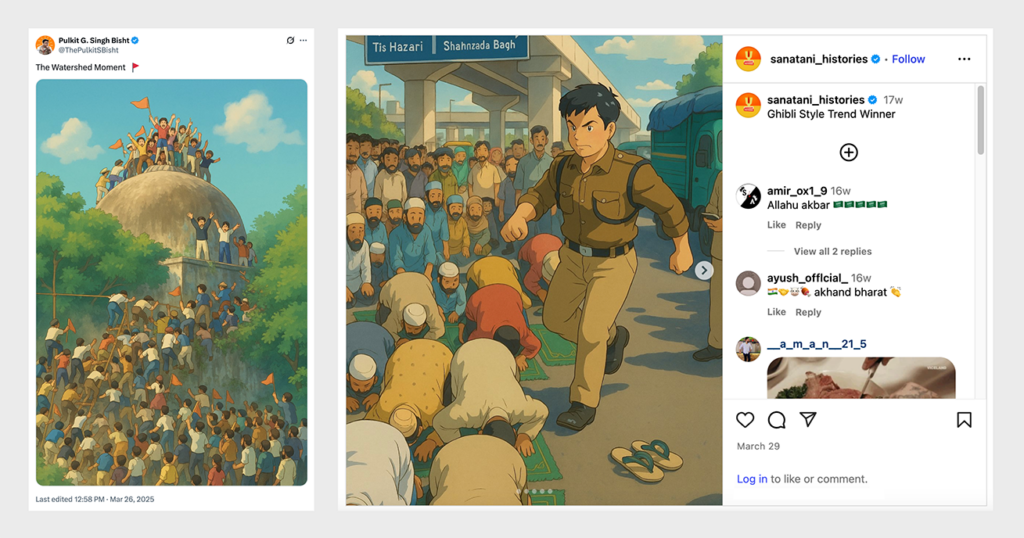 As a country with an estimated 900 million internet users, Indians have played an important role in engaging with and shaping the landscape of AI-generated imagery. A survey by LocalCircles found that nine percent of Indian AI-platform users, numbering about 22 million, employ tools “for creating or enhancing pictures.” While much of this use is innocuous and routine, everyday activity, a growing climate of hate, intolerance, and violence in the country means that AI image generation is being used to target religious minorities, particularly Muslims, Christians, and other marginalized Indian groups like caste-oppressed communities.