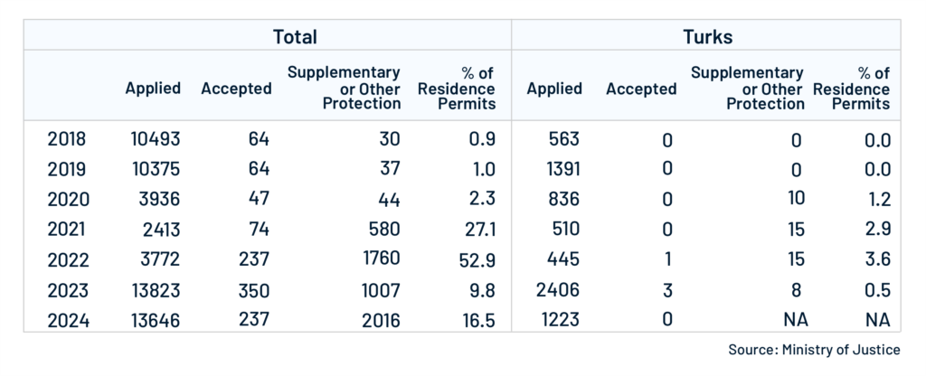 Hate groups have also capitalized on the fact that many Kurds submit multiple refugee applications after arriving in Japan, portraying this practice as an “abuse” of the country’s asylum system. The reality is that Japan is widely recognized for its extremely low refugee recognition rate, as shown below. Although the number of recognized refugees increased in the 2020s, the rise was driven primarily by applicants from Myanmar and Ukraine, while recognition rates for other nationalities have remained largely unchanged.