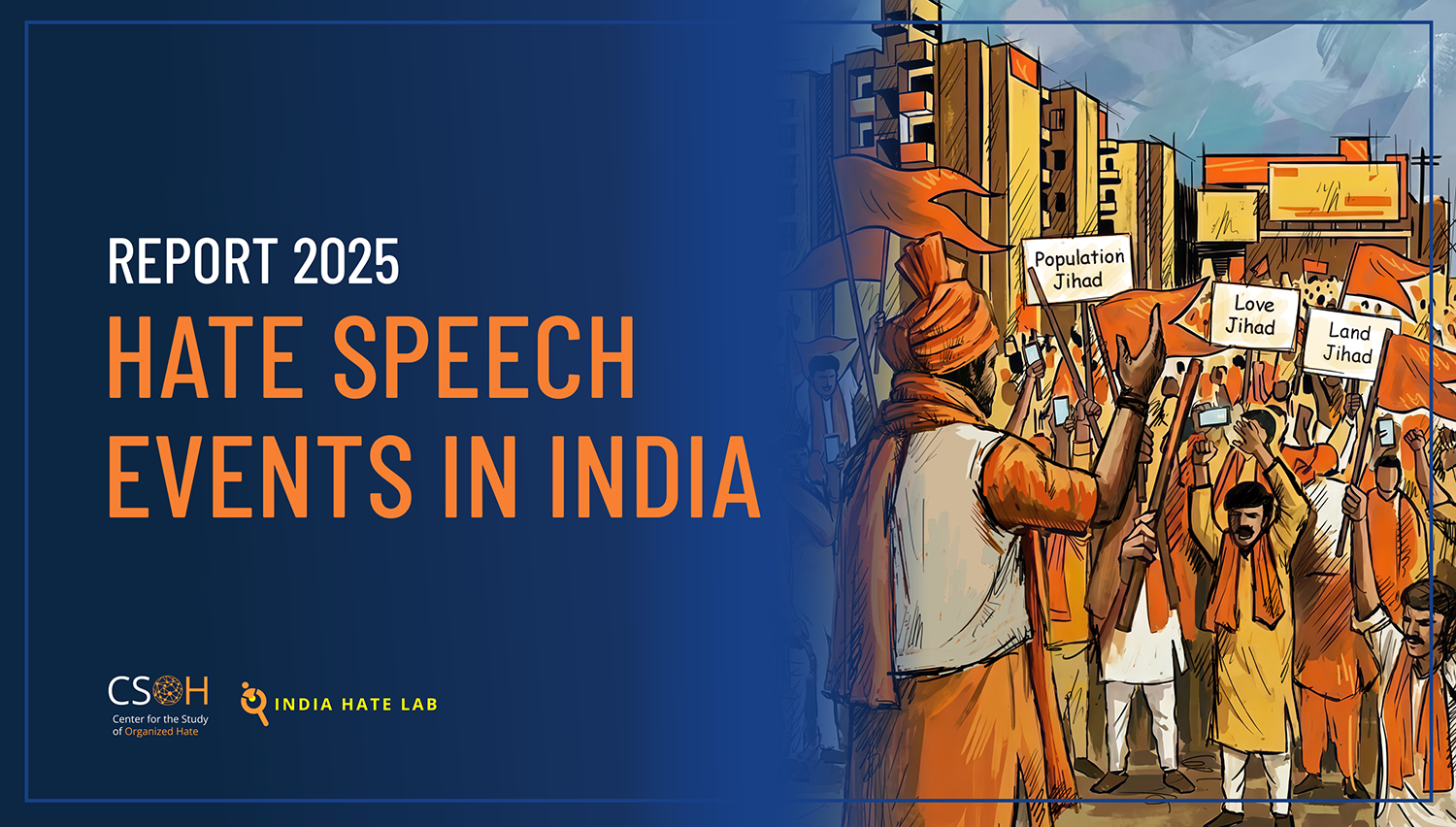 Washington, D.C. (January 13, 2026) – The India Hate Lab (IHL), a project of the Center for the Study of Organized Hate (CSOH), has released its 2025 annual report documenting 1,318 in-person hate speech events targeting religious minorities, primarily Muslims and Christians, across 21 states, one Union Territory, and the National Capital Territory (NCT) of Delhi in 2025. This represents a 13% increase from 2024, and 97% increase from 2023, when 668 such incidents were recorded.